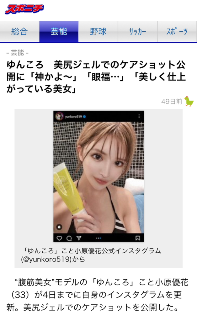 ゆんころさんの記事で美尻ジェルが紹介されました。